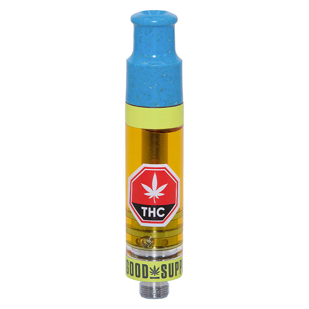 Get that Blueberry Yum. Bodacious blueberry, luscious lemon, and scintillatingly sweet. Made with botanically sourced ingredients and flavouring agents and over 2x the flavouring found in their 1g vapes, that means you can enjoy the bold flavours for longer. Even better? They double-distill and double-filter their THC distillate for superior quality flavour and potency. Blueberry Yum's extra-large 2g fill lets Good Supply specially formulate a delicious cannabinoid-packed extract with 1,000mg THC, 250mg CBG, and 250mg CBD. Super session-able and supremely tasty, it's not just about having the best flavour and cannabinoid formulations in the game though. They're also bringing you reliable hardware and wider mouthpieces to improve airflow and reduce clogging. The sustainable packaging and hemp mouthpieces are just the berry on top. So, grab Blueberry Yum 2g Vapes, with their big fruity fills in bigger carts, bolder flavours, and supersized cannabinoid content that will make your fruit-filled day.